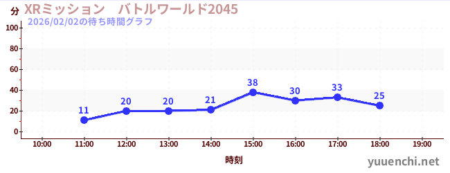 2026/02/02の待ち時間グラフ (XRミッション バトルワールド2045)