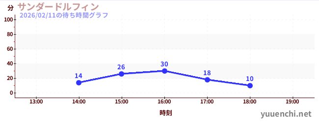 2026/02/11の待ち時間グラフ (サンダードルフィン)