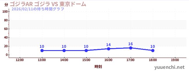 2026/02/11の待ち時間グラフ (ゴジラAR ゴジラ VS 東京ドーム)