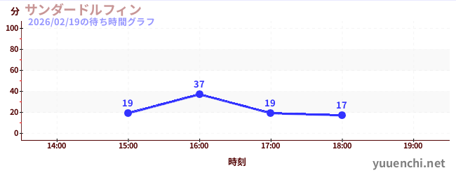 2026/02/19の待ち時間グラフ (サンダードルフィン)