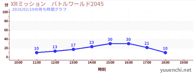 2026/02/19の待ち時間グラフ (XRミッション バトルワールド2045)
