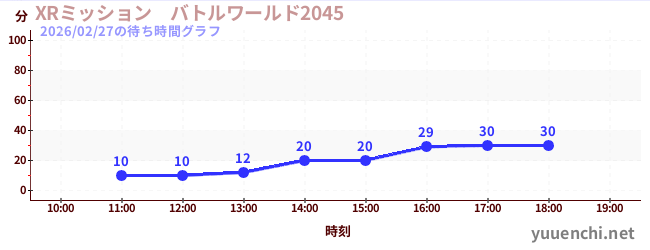 2026/02/27の待ち時間グラフ (XRミッション バトルワールド2045)
