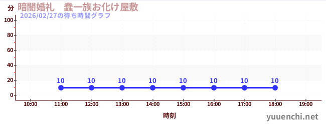2026/02/27の待ち時間グラフ (暗闇婚礼 蠢一族お化け屋敷)