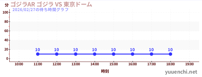 2026/02/27の待ち時間グラフ (ゴジラAR ゴジラ VS 東京ドーム)