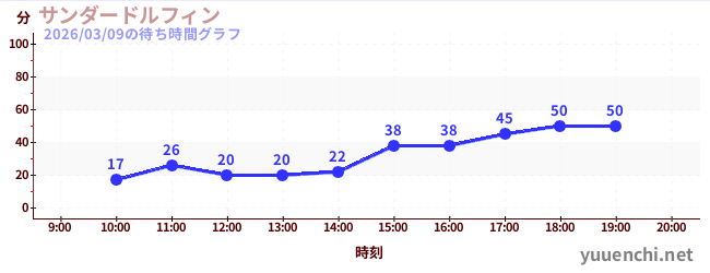 2026/03/09の待ち時間グラフ (サンダードルフィン)