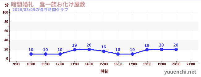 2026/03/09の待ち時間グラフ (暗闇婚礼 蠢一族お化け屋敷)