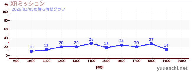 2026/03/09の待ち時間グラフ (XRミッション)
