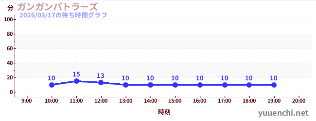 2026/03/17の待ち時間グラフ (ガンガンバトラーズ)