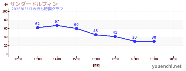 2026/03/17の待ち時間グラフ (サンダードルフィン)
