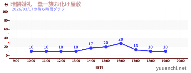 2026/03/17の待ち時間グラフ (暗闇婚礼 蠢一族お化け屋敷)