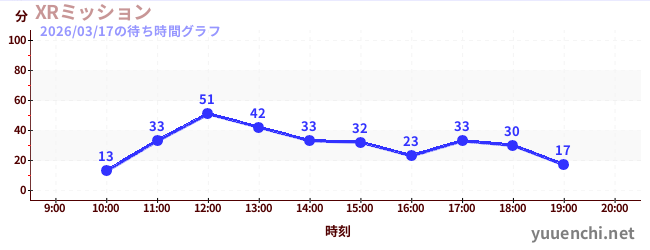 2026/03/17の待ち時間グラフ (ブンブンビー)