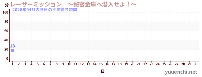 2026/04の一日平均待ち時間 (レーザーミッション ~秘密金庫へ潜入せよ!~)