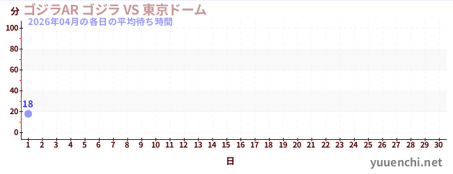 2026/04の一日平均待ち時間 (ゴジラAR ゴジラ VS 東京ドーム)