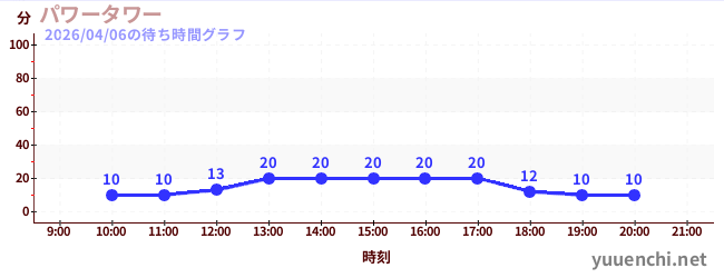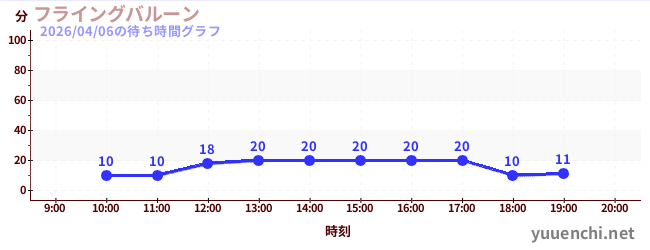 2026/04/06の待ち時間グラフ (フライングバルーン)