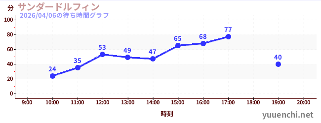 2026/04/06の待ち時間グラフ (サンダードルフィン)