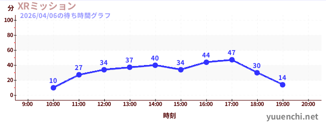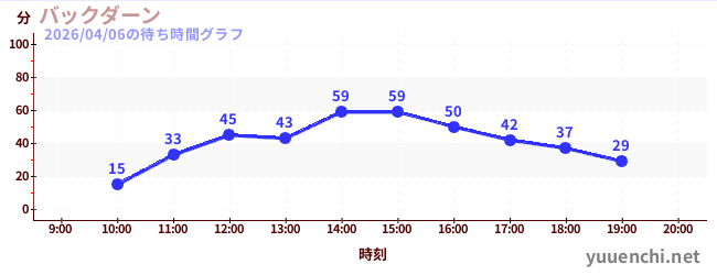 2026/04/06の待ち時間グラフ (ウォーターキャノン)