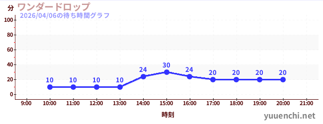2026/04/06の待ち時間グラフ (ワンダードロップ)