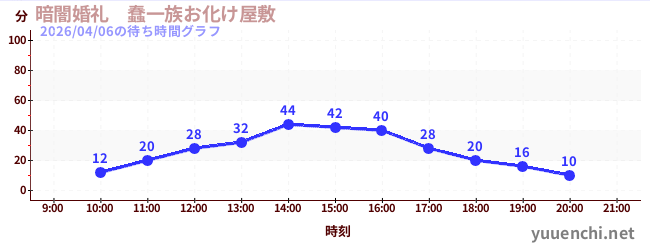 2026/04/06の待ち時間グラフ (暗闇婚礼 蠢一族お化け屋敷)