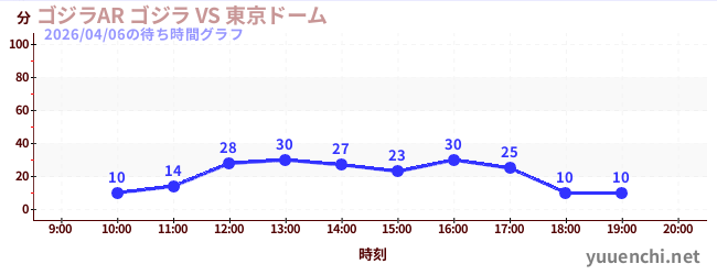 2026/04/06の待ち時間グラフ (ゴジラAR ゴジラ VS 東京ドーム)