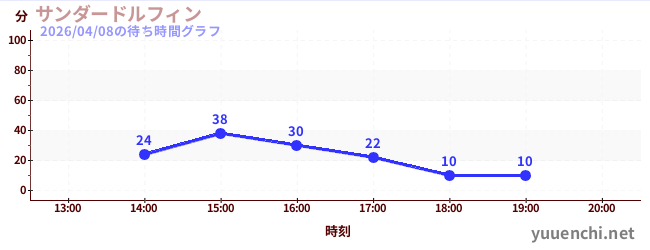2026/04/08の待ち時間グラフ (サンダードルフィン)