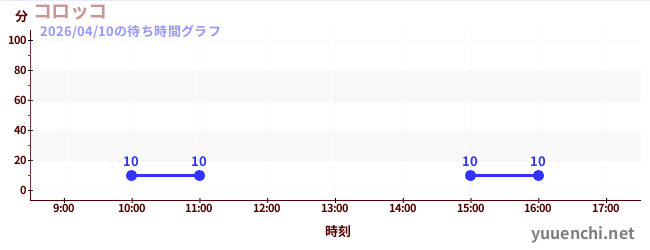 2026/04/10の待ち時間グラフ (コロッコ)