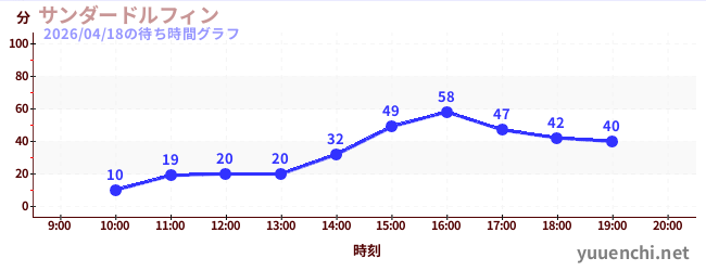2026/04/18の待ち時間グラフ (サンダードルフィン)