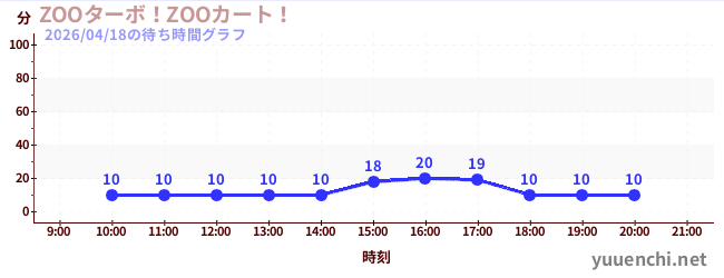2026/04/18の待ち時間グラフ (ZOOターボ!ZOOカート!)