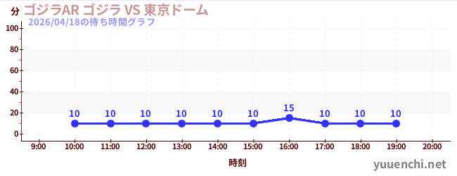 2026/04/18の待ち時間グラフ (ゴジラAR ゴジラ VS 東京ドーム)