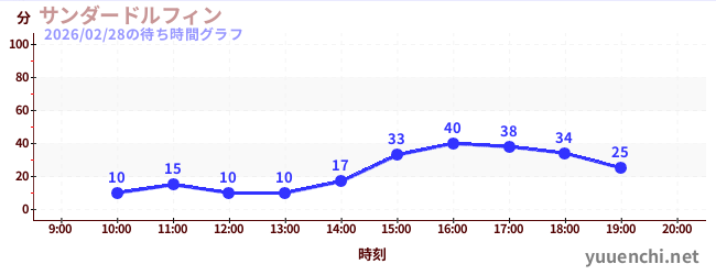 2026/02/28の待ち時間グラフ (サンダードルフィン)