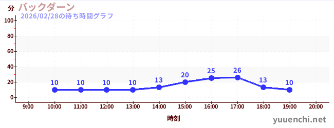 2026/02/28の待ち時間グラフ (ブンブンビー)