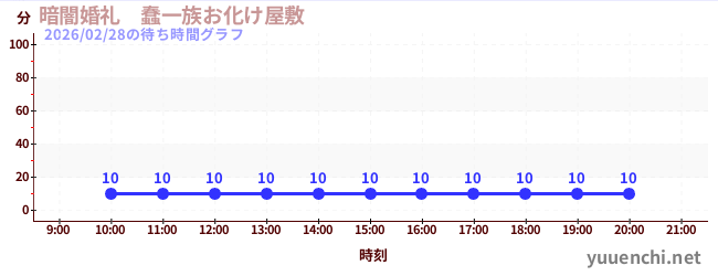 2026/02/28の待ち時間グラフ (暗闇婚礼 蠢一族お化け屋敷)