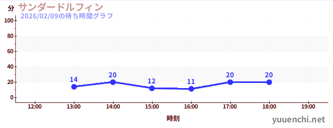 2026/02/09の待ち時間グラフ (サンダードルフィン)