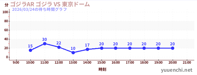 2026/03/24の待ち時間グラフ (ゴジラAR ゴジラ VS 東京ドーム)