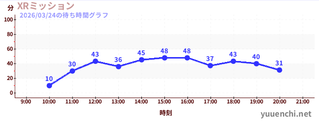 2026/03/24の待ち時間グラフ (ブンブンビー)