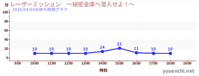 今日これまでの混雑グラフ (レーザーミッション ~秘密金庫へ潜入せよ!~)