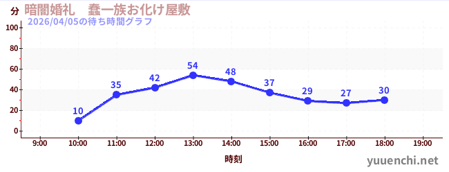 今日これまでの混雑グラフ (暗闇婚礼 蠢一族お化け屋敷)