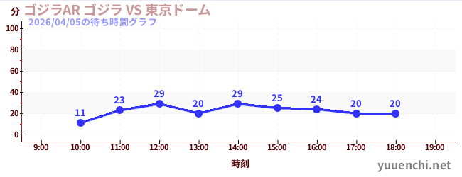 今日これまでの混雑グラフ (ゴジラAR ゴジラ VS 東京ドーム)