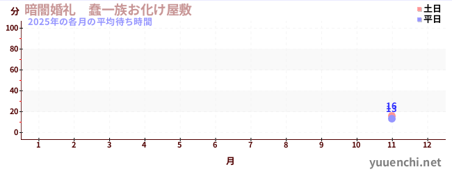 2025年の各月の平均待ち時間 (暗闇婚礼 蠢一族お化け屋敷)