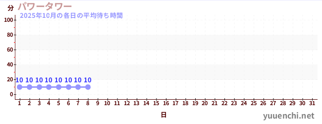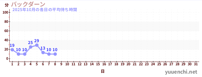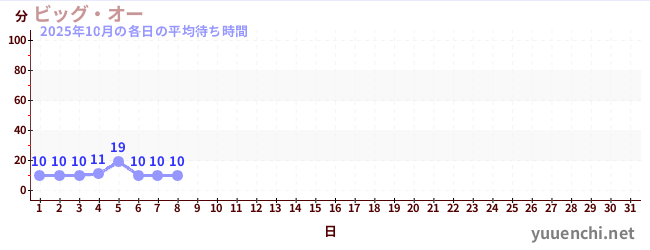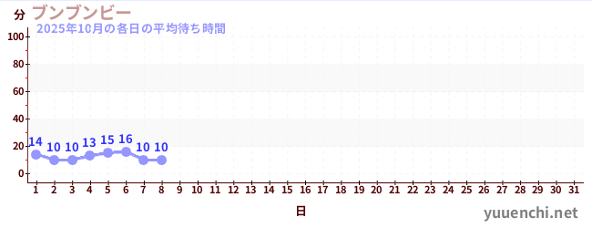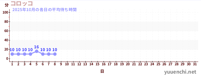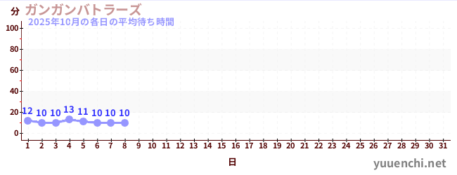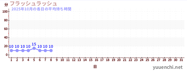 2025/10เวลารอเฉลี่ยต่อวันของ (フライングバルーン)