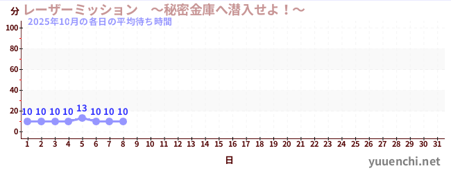 2025/10เวลารอเฉลี่ยต่อวันของ (Laser Mission - แทรกซึมเข้าไปในความลับ! ~)