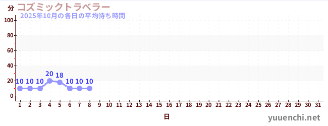 2025/10เวลารอเฉลี่ยต่อวันของ (นักเดินทางในจักรวาล)