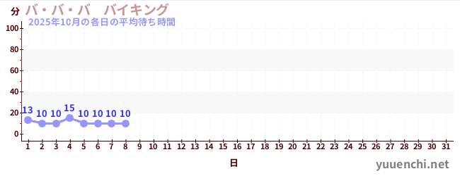 2025/10เวลารอเฉลี่ยต่อวันของ (バ・バ・バ バイキング)