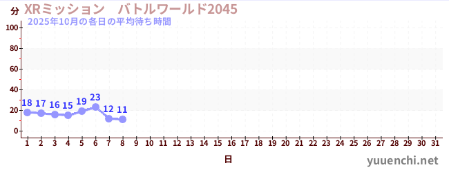 2025/10เวลารอเฉลี่ยต่อวันของ (XRミッション バトルワールド2045)