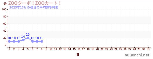 2025/10เวลารอเฉลี่ยต่อวันของ (ZOOターボ!ZOOカート!)