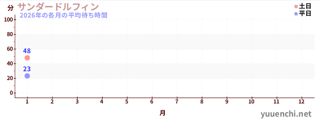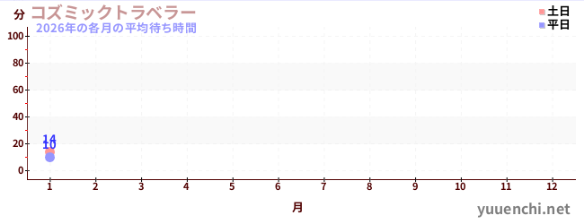 2026年度每月的平均等待時間 (宇宙旅行者)