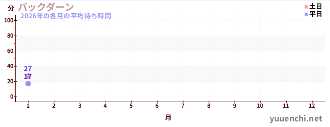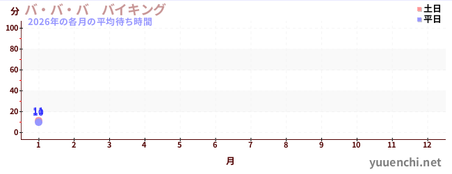 2026年度每月的平均等待時間 (バ・バ・バ バイキング)