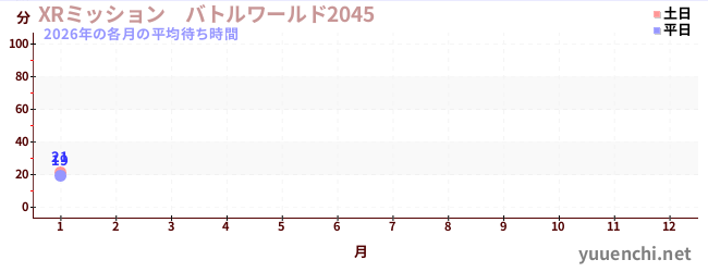 2026年度每月的平均等待時間 (XRミッション バトルワールド2045)