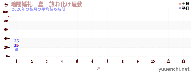 2026年度每月的平均等待時間 (暗闇婚礼 蠢一族お化け屋敷)