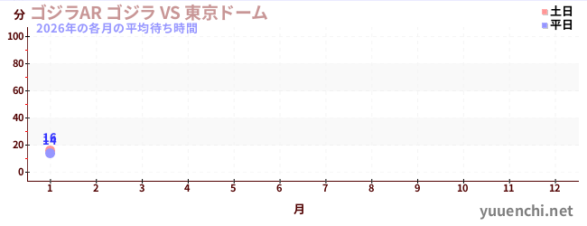 2026年度每月的平均等待時間 (ゴジラAR ゴジラ VS 東京ドーム)