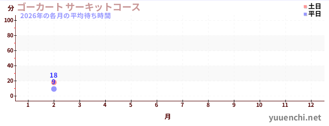 2026 ave wait time by month (ゴーカート サーキットコース)